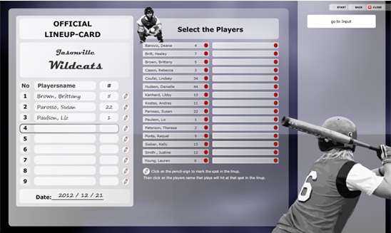 If your teams are complete, proceed to the main screen where you fill in collected game data for the players.