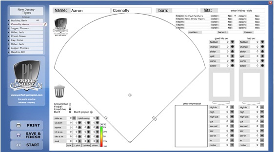 Additionally, you can click and set markers in the strike-zone area to record the batter's performance.
